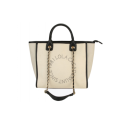 Elegante bolso estilo shopper en Algodón, combinado con Piel Sintética, con doble asa