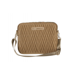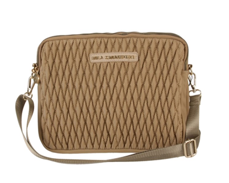 Bandolera de nailon acolchada. Es un diseño con triple bolsillo y cierre cremallera en dorado.