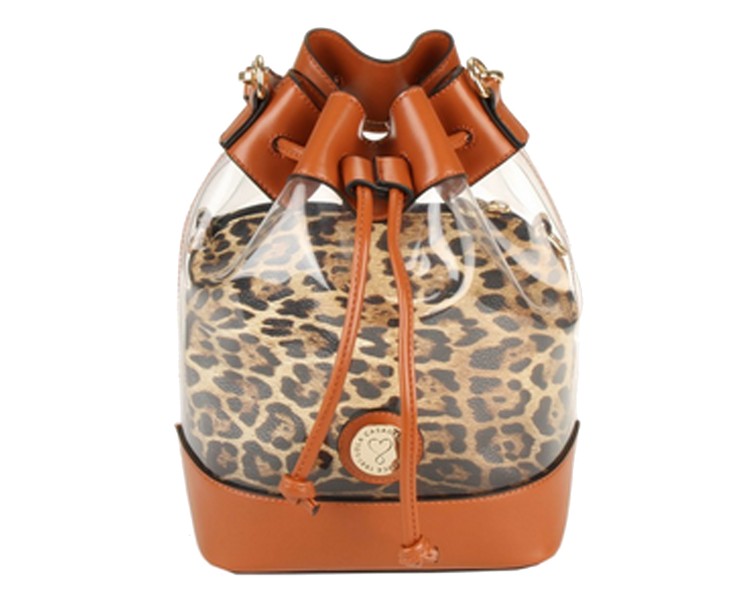 Bolso shopper de vinilo combinado con ecopiel marrón. Es un diseño con organizador animal print en su interior