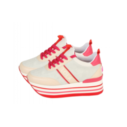 Sneaker plataforma bicolor crudo y rosa.