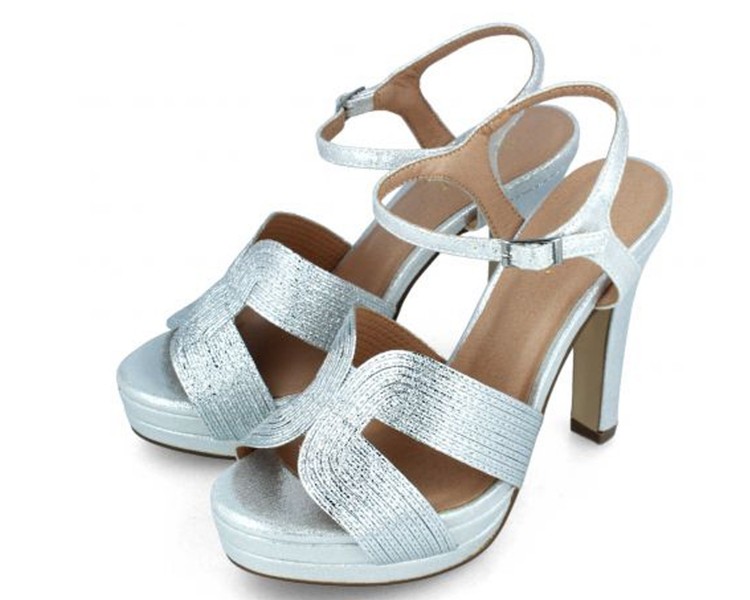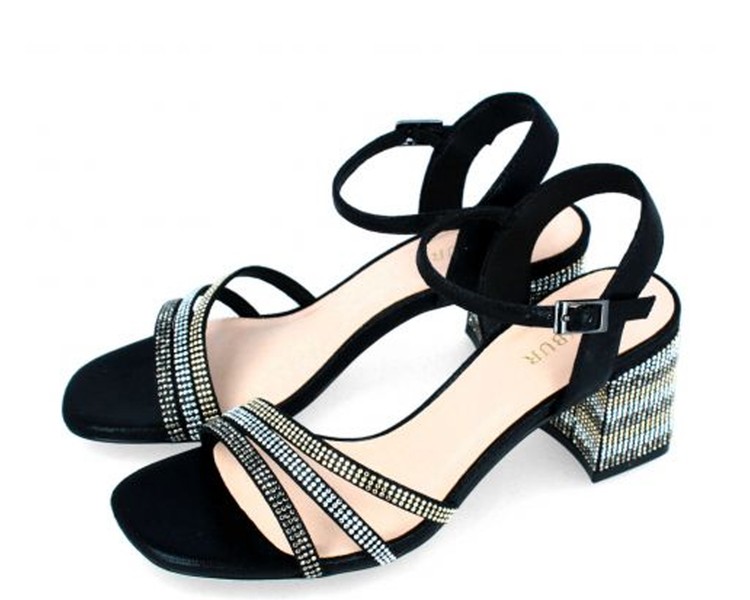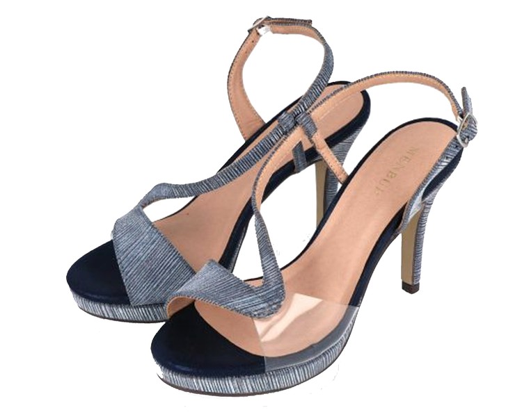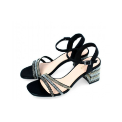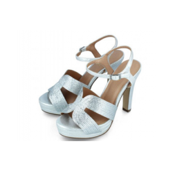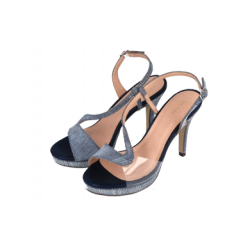 Sandalia en raso con tacón de 9.5 cm y lateral en vinilo.