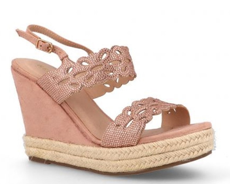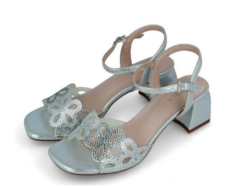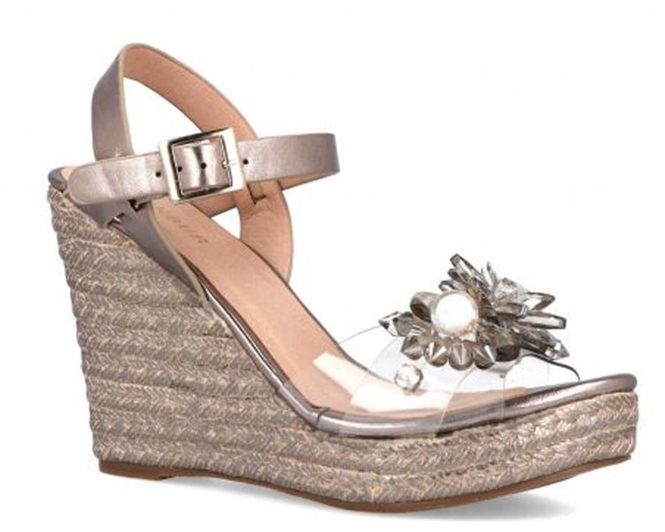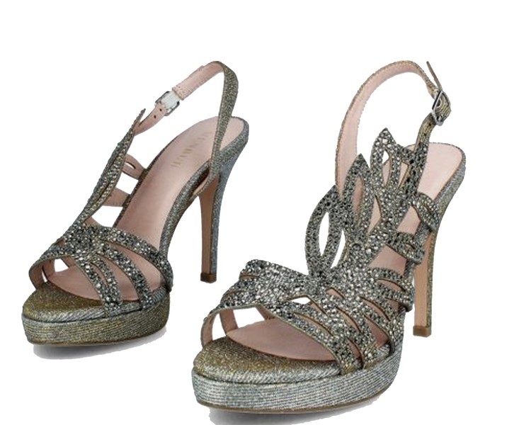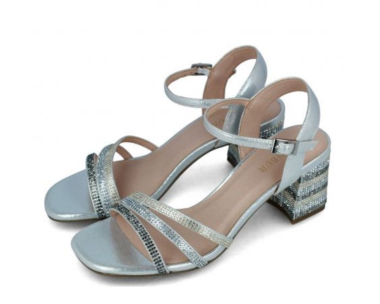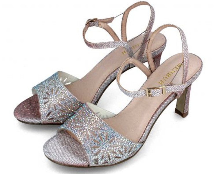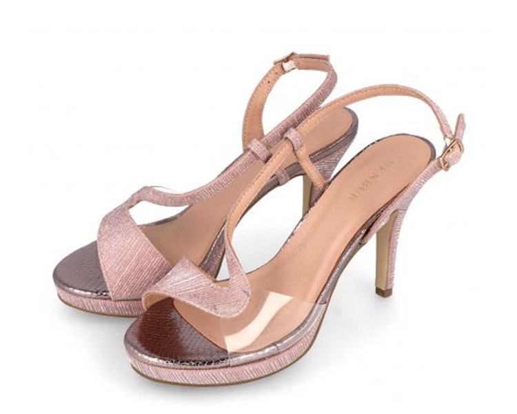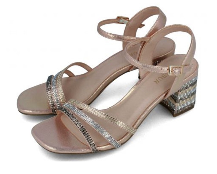 Sandalia oro rosa de raso con cristal en tres tonos.