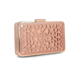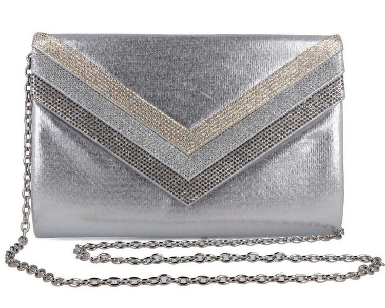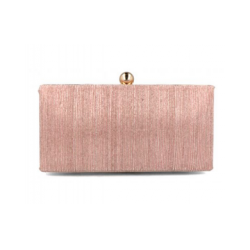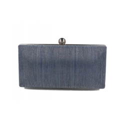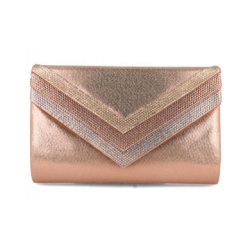 Bolso de fiesta tipo clutch pequeño con forma ovalada y estampado de rayas multicolor efecto metalizado.