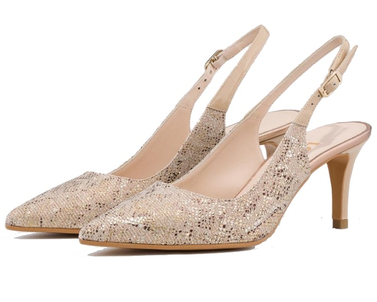Peep Toe en piel anacarada de novia con adorno en strass.