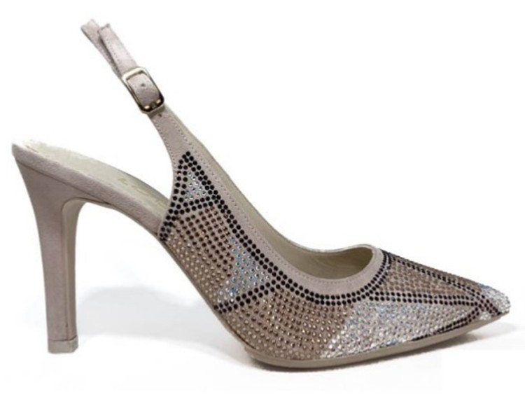 Peep Toe en ante rosa con adorno en strass.