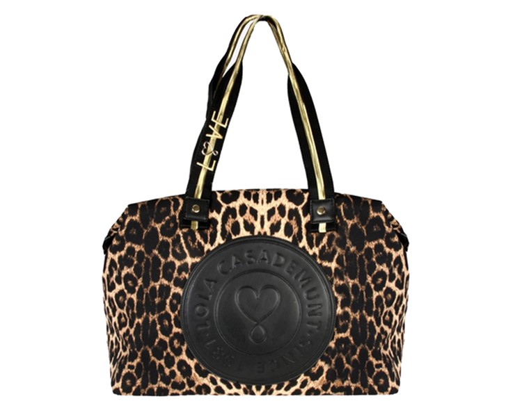 Bolso weekend con estampado animal print y logo grabado. Presenta doble