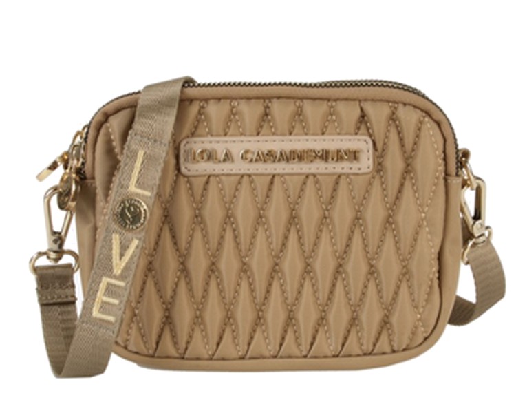 Bandolera de nailon acolhada. Es un diseño con triple bolsillo y cierre cremallera en dorado.