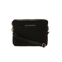 Bandolera de nailon acolchada. Es un diseño con triple bolsillo y cierre cremallera en dorado.