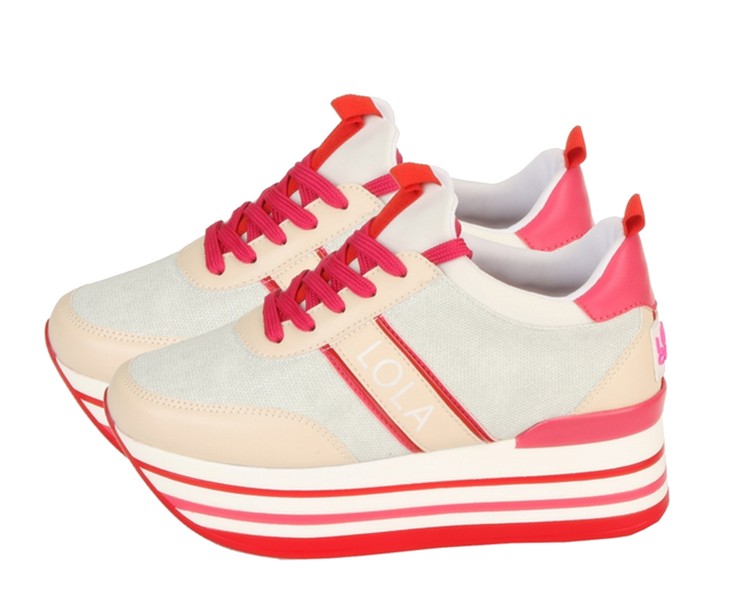 Sneaker plataforma bicolor crudo y rosa.
