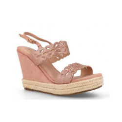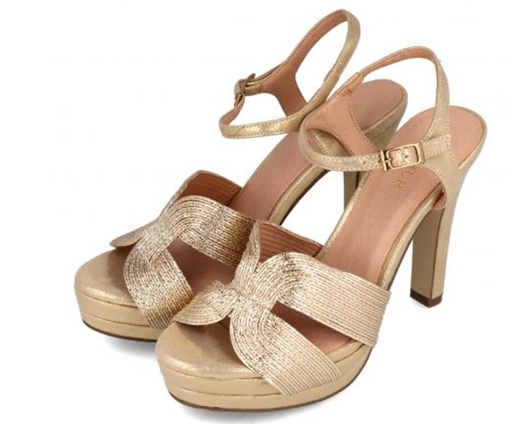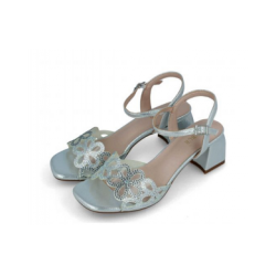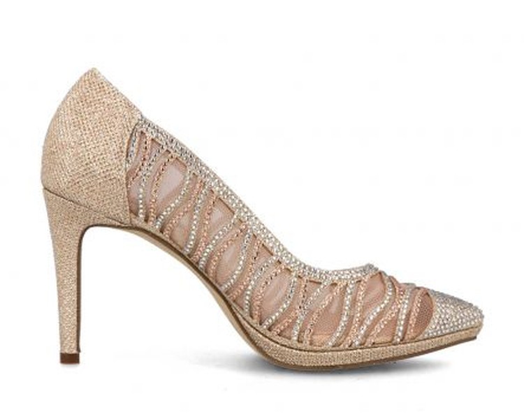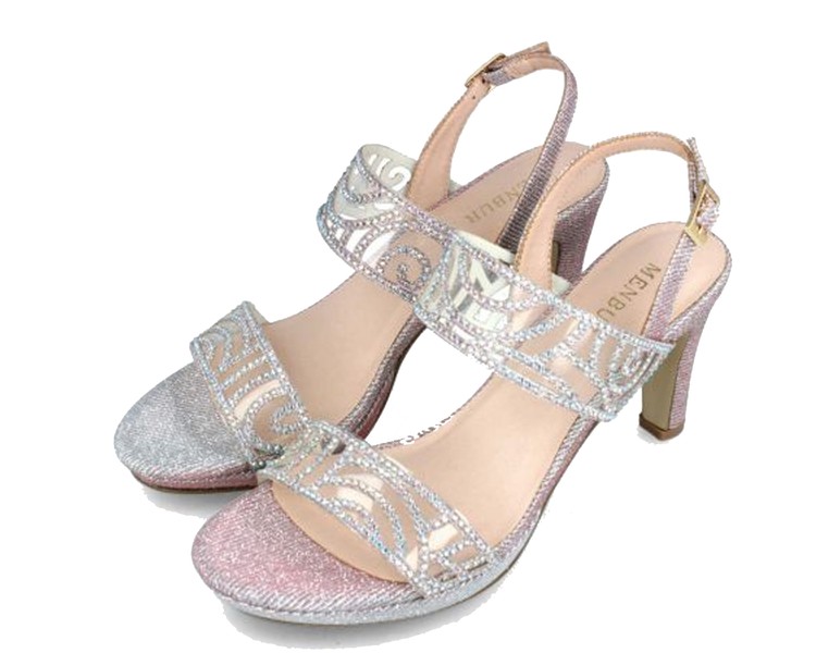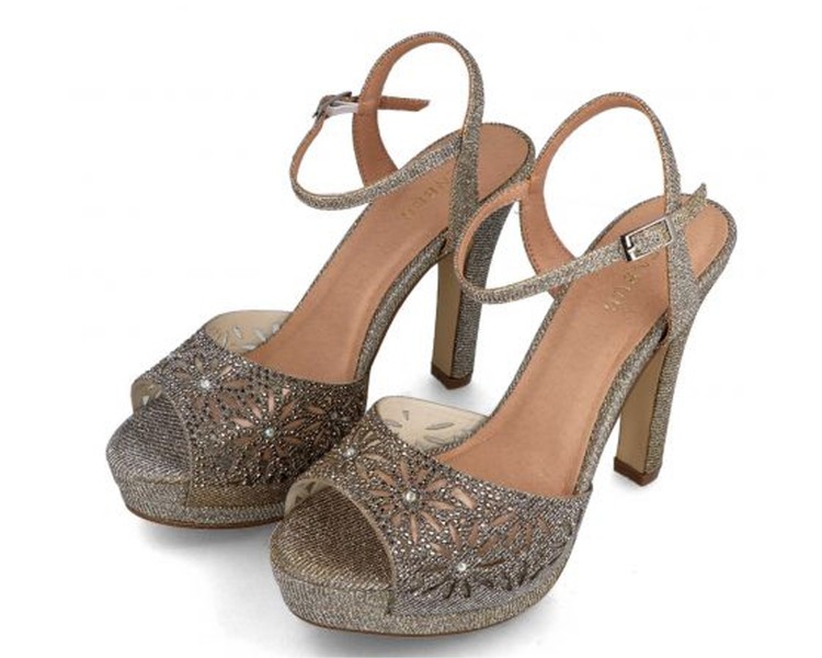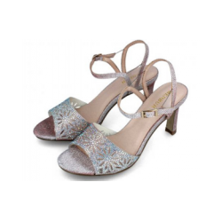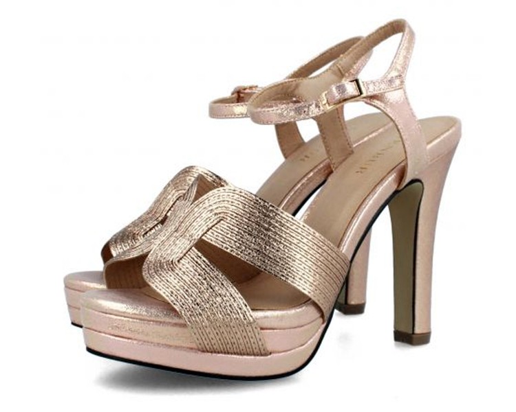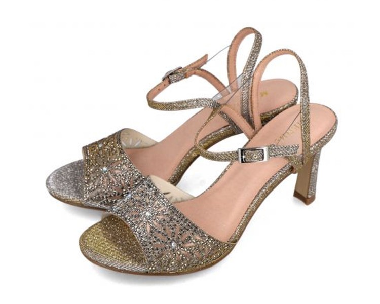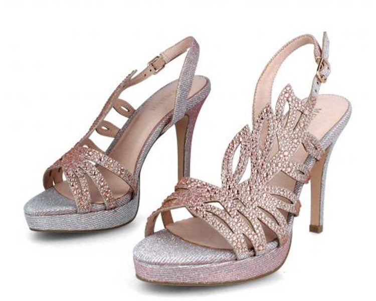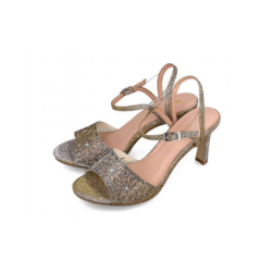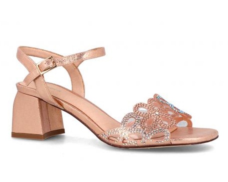 Sandalia oro rosa de raso con cristal en tres tonos.