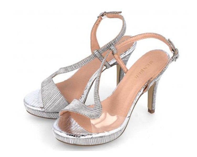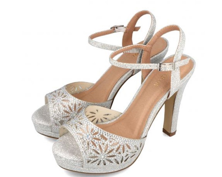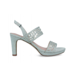 Sandalia en raso con tacón de 9.5 cm y lateral en vinilo.