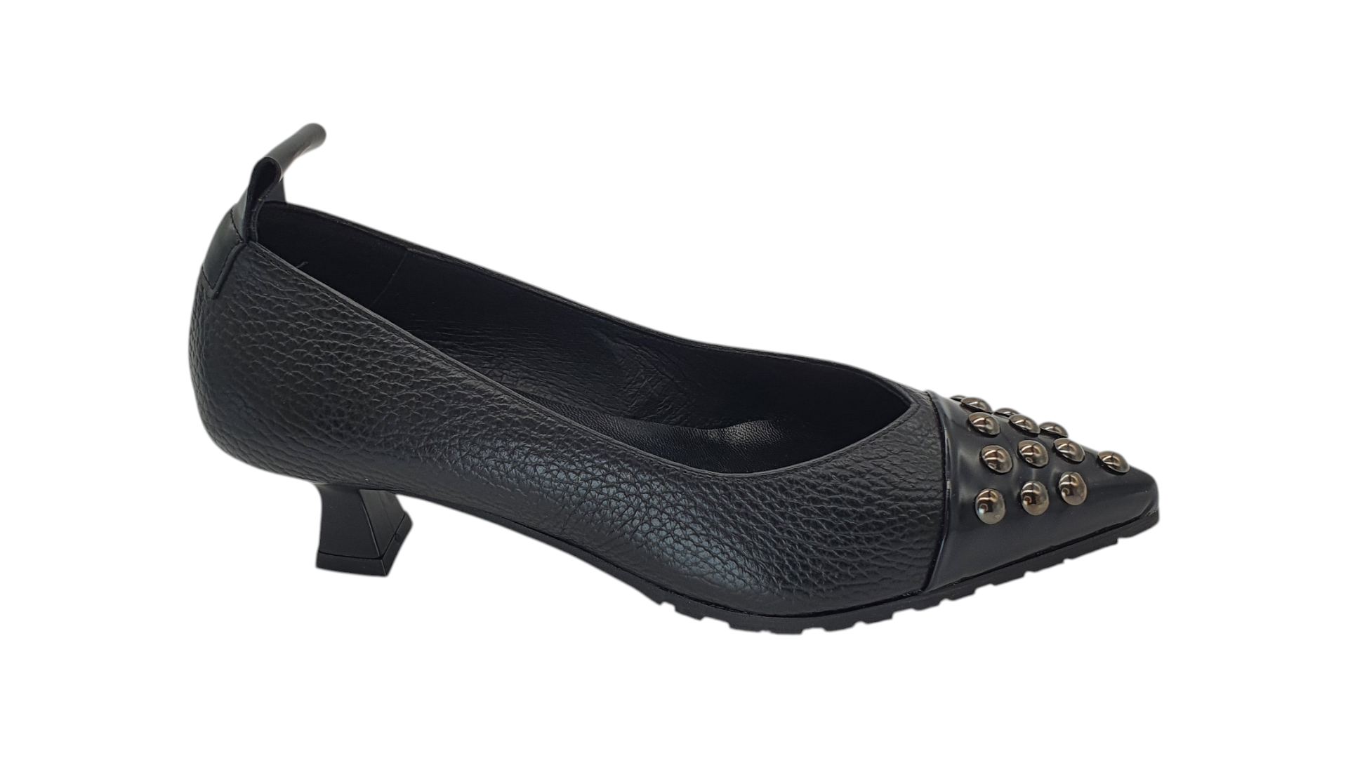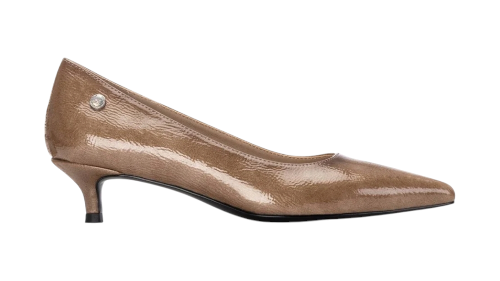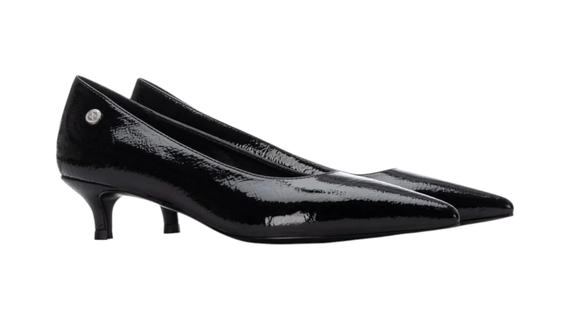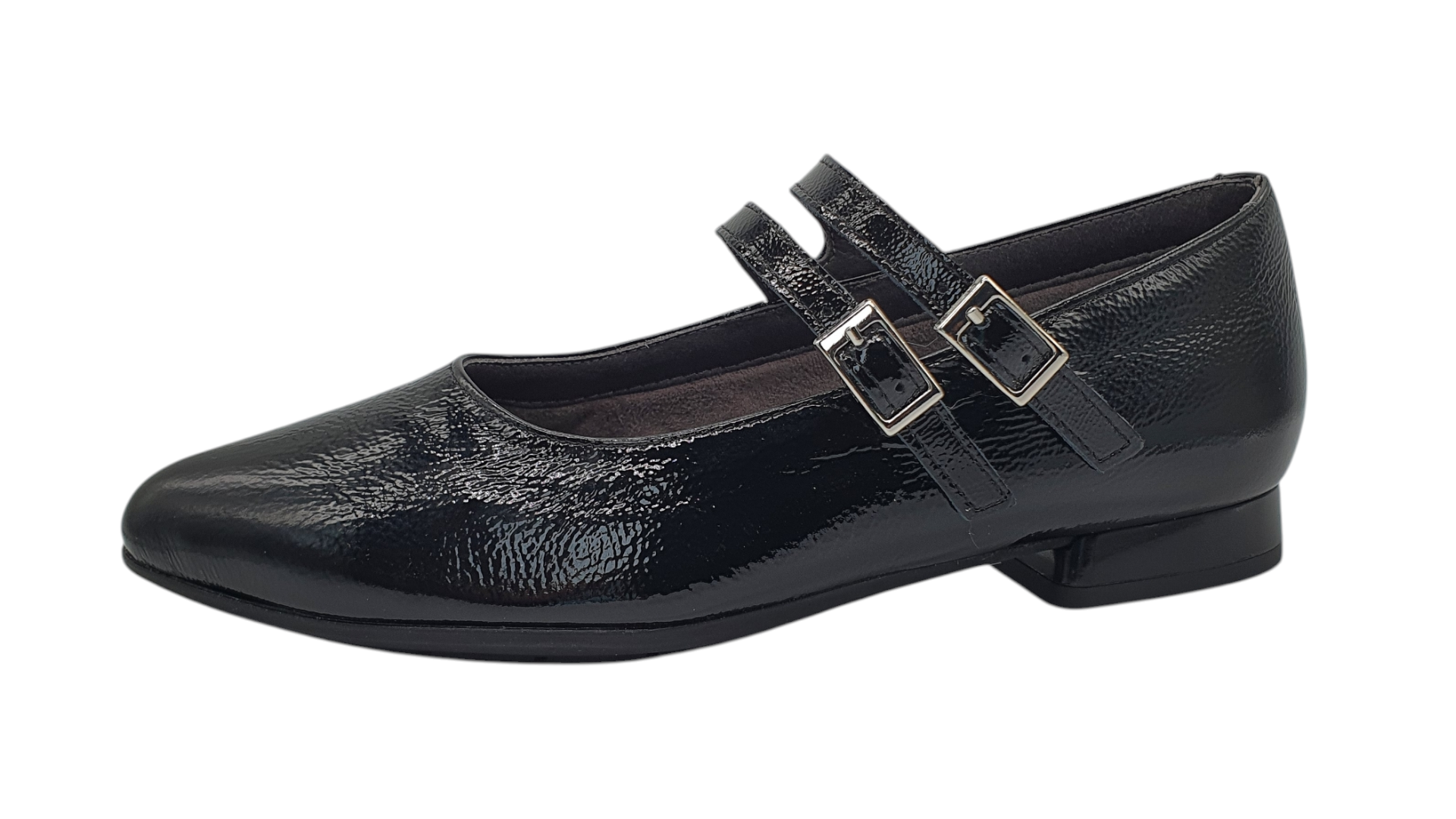 Zapato de mujer tipo mocasín, con gruesa suela de 5 cm de goma. Fabricado en material que imita al charol.